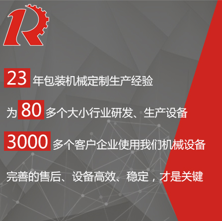 廣州市睿佳機械設(shè)備有限公司是國內(nèi)專業(yè)從事自動化包裝機械產(chǎn)品,集研發(fā)、生產(chǎn)、銷售、服務于一體的制造公司,已通過ISO9001:2008質(zhì)量體系認證,部分系列產(chǎn)品已通過歐盟CE認證。 經(jīng)過多年的發(fā)展,公司專業(yè)生產(chǎn):封尾機,灌裝機,旋蓋機,貼標機,包裝機,輸送機,噴碼機,灌裝生產(chǎn)線等機械設(shè)備。企業(yè)以開發(fā)生產(chǎn)包裝機械和訂做特殊包裝機械為主,所生產(chǎn)的包裝機械在同行和客戶中都得到一致的贊賞,以高技術(shù)和穩(wěn)定的質(zhì)量遠銷東南亞和歐美。在國內(nèi),也成為多家知名藥廠、食品廠、化妝品廠指定使用產(chǎn)品。 睿佳機械:“想客戶之所想,急客戶之所急”既是睿佳對廣大客戶的承諾也是睿佳的宗旨,睿佳將與時代同步、銳意進取,以更優(yōu)質(zhì)的服務回報廣大客戶對睿佳的信賴和支持。